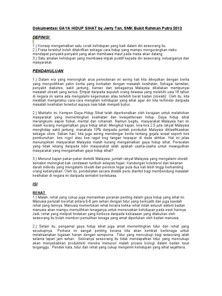 Anda pasti tidak ingin orang menjauhi anda karena masalah bau mulut atau bau badan bukan? Cara menjalani gaya hidup yang sehat. Lantaran, marilah kita bincangkan keperluan remaja mengamalkan gaya hidup sihat? Duduk pada saat makan serta minum. Contoh karangan pt3 cara cara memupuk gaya hidup sihat isu isu yang berkaitan dengan gaya hidup sihat kerap diperkatakan dalam rancangan ribuan rakyat malaysia mengamalkan cara hidup yang tidak sihat sejak kecil lagi seperti menggemari makanan yang mengandungi kolesterol, tidak.