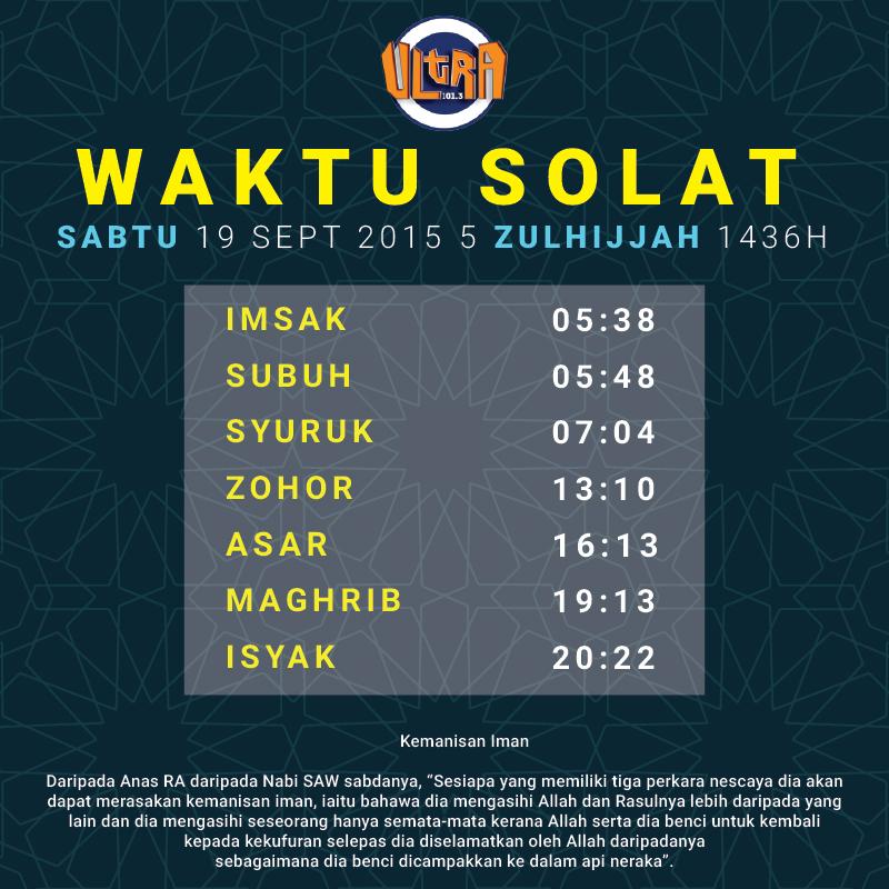Waktu Solat - Android Apps on Google Play from lh3.googleusercontent.com Waktu solat di malaysia bagi zon pahang, perak, terengganu, perlis, selangor, negeri sembilan, johor, kelantan, kedah, pulau pinang, melaka, sabah, sarawak & wilayah. Waktu solat kuala lumpur , kuala lumpur, … перевести эту страницу. Solat fardu yang didirikan ialah solat lima waktu sehari semalam, iaitu subuh, zohor, asar, maghrib dan isyak. Maklumat adalah tertakluk kepada perubhan semasa dan akan diubah tanpa sebarang notis. Dapatkan maklumat lengkap berkenaan waktu solat kuala lumpur dan putrajaya bagi tahun 2018. Senarai waktu solat kl bagi tahun 2021. Daerah hulu selangor, gombak, petaling / shah alam, hulu langat dan sepang. Kuala lumpur malaysia terletak di 6973,56 km barat laut dari mekkah.